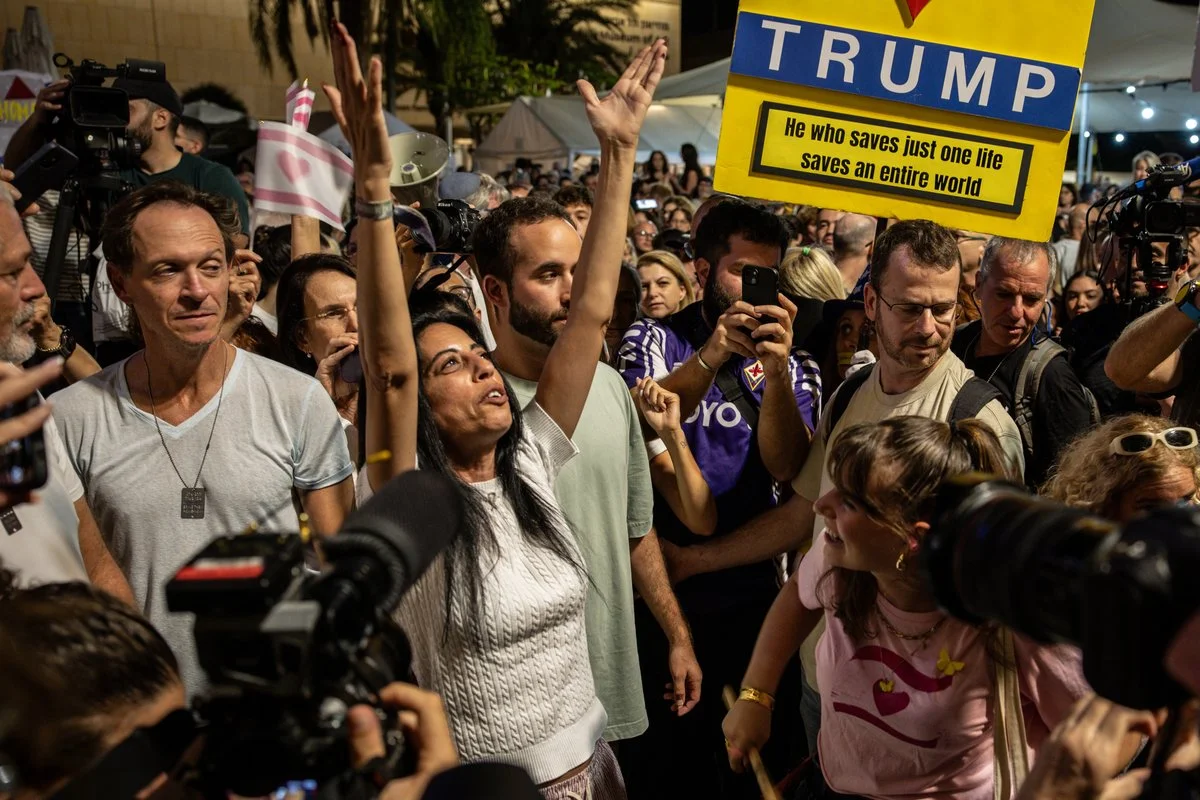 Praça dos Reféns após o anúncio da paz entre Israel e Hamas