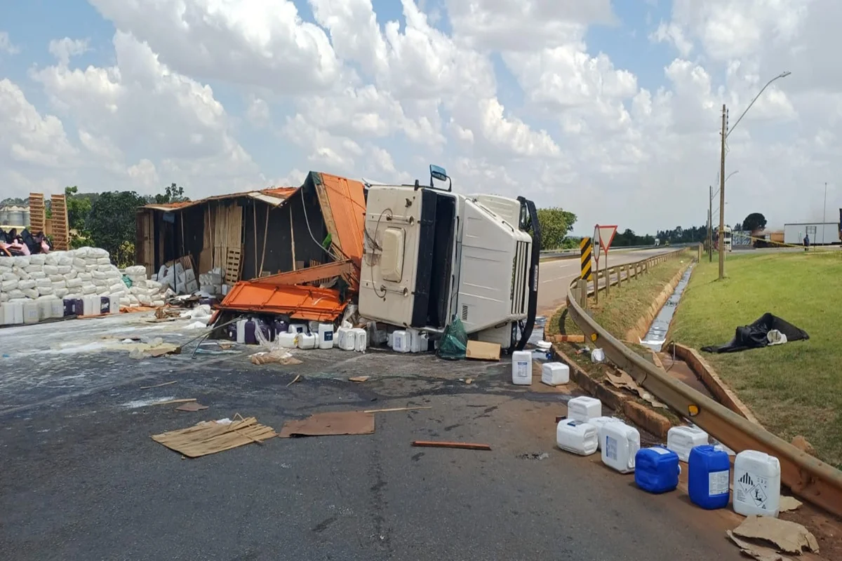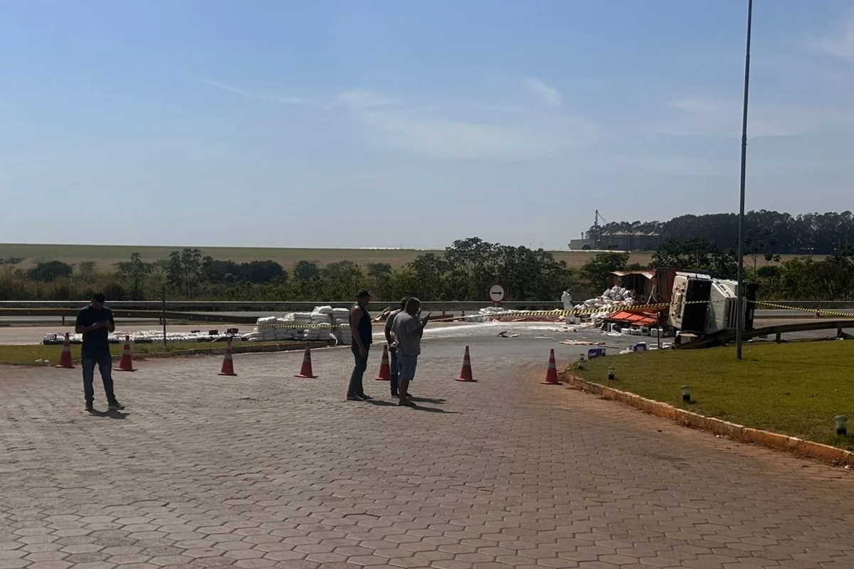 Carreta carregada de agrotóxicos tomba e interdita trecho da BR-050