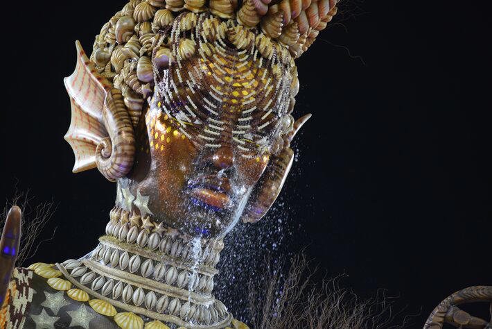 O carro alegórico chamou a atenção por trazer a representação africana da Iemanjá, repleta de conchas, e também pela plasticidade do efeito da queda da água. A alegoria é inspirada no filme A Deusa Negra, de 1978, do cineasta nigeriano Ola Baloguno, no qual Lea interpreta Iemanjá.