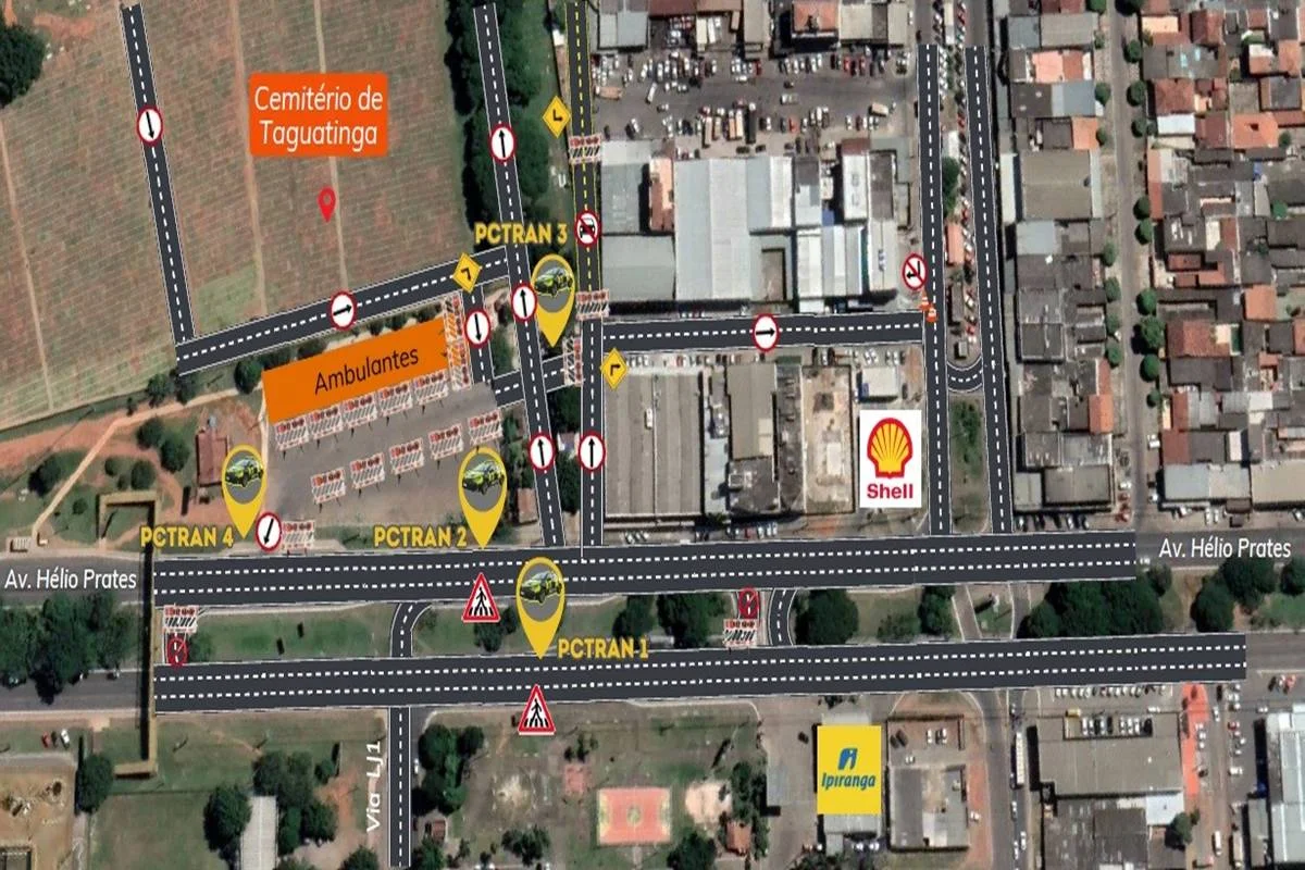 No cemitério de Planaltina, a previsão de interdição parcial da via em frente ao cemitério é de 7h às 18h.