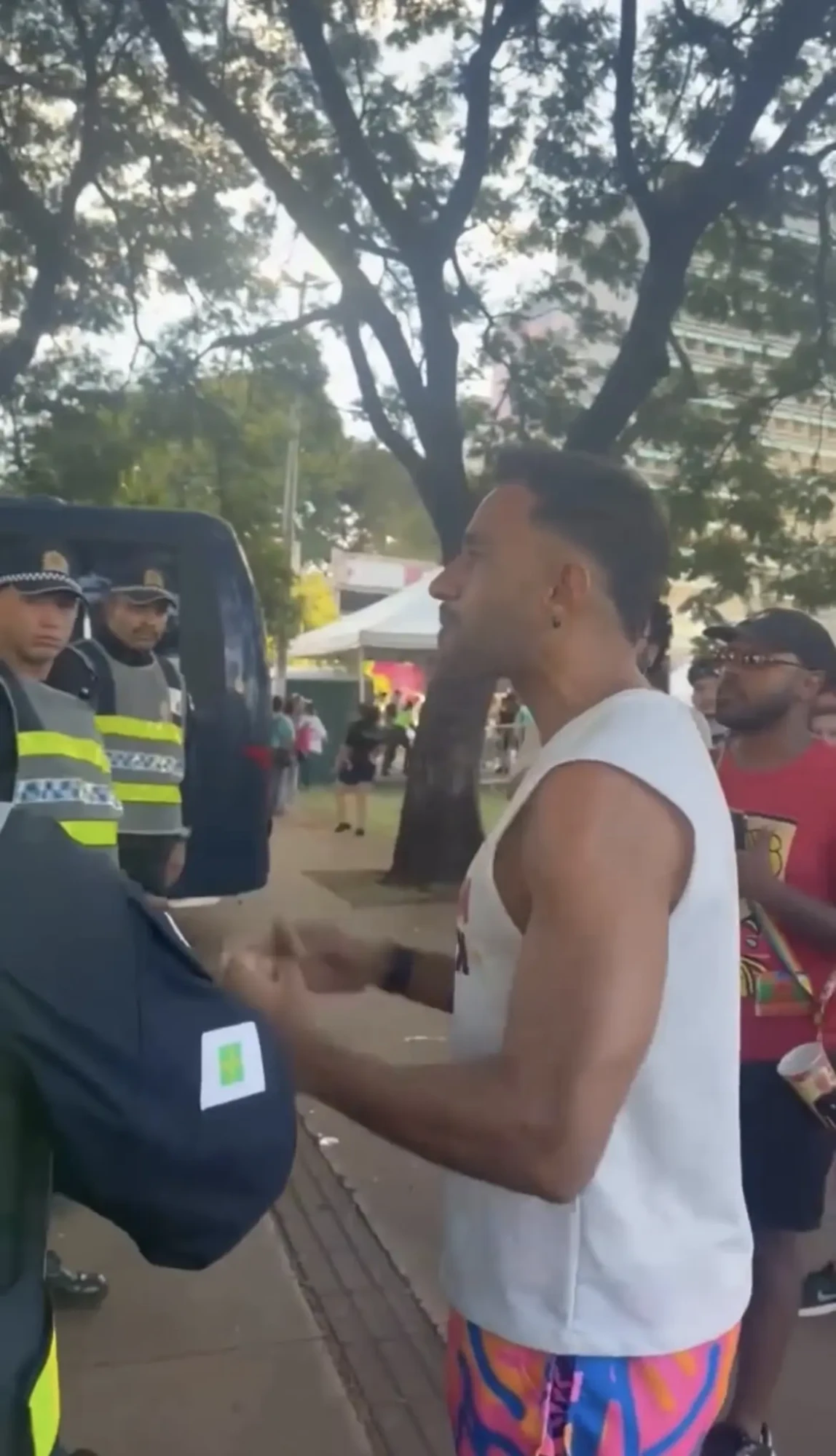 Por outro lado, o major Brooke, da Polícia Militar do Distrito Federal, afirmou que a equipe realizava patrulhamento de rotina no evento quando cães farejadores identificaram a possível presença de drogas. “A Polícia Militar estava passando no local, fazendo patrulhamento normal, como estamos fazendo em todos os eventos de carnaval. Os cães têm um faro muito sensível e detectaram um cheiro de entorpecente.”