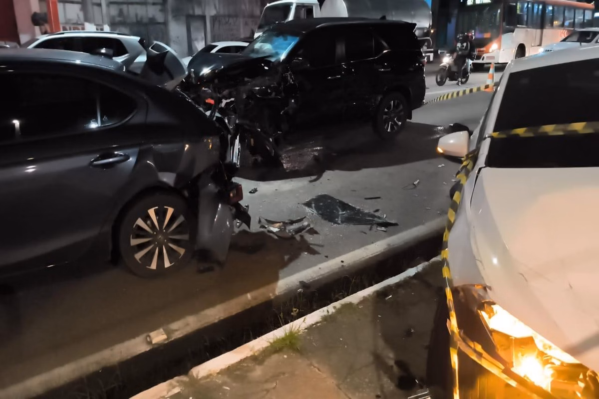 Condutores dos veículos envolvidos na colisão e testemunhas filmaram o estrago do acidente. Nos registros, Breno aparece visivelmente alterado.