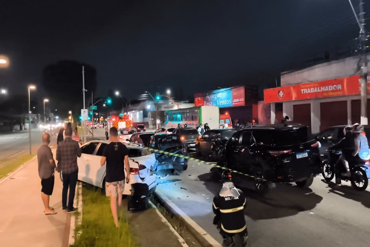 Imagens mostram o veículo do deputado andando pelas ruas da cidade antes do acidente aparentando estar bêbado. O momento do engavetamento também foi registrado por câmeras de segurança.