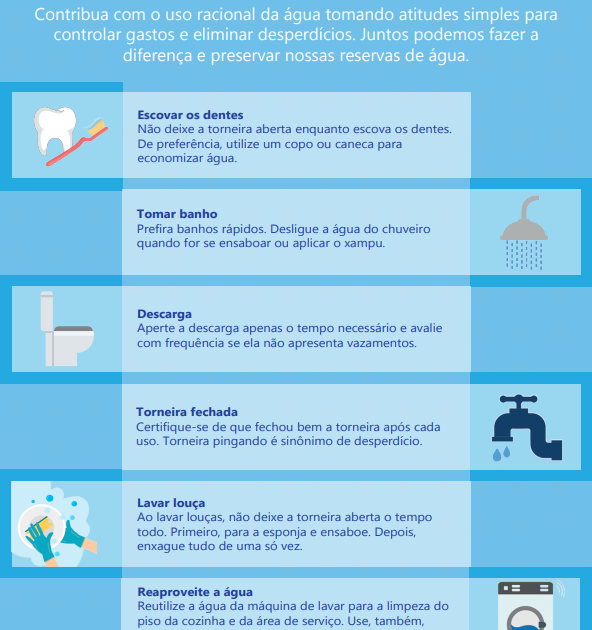 Feche a torneira ao fazer a barba, lavar as mãos ou escovar os dentes. E depois do uso verifique se a torneira ficou bem fechada.