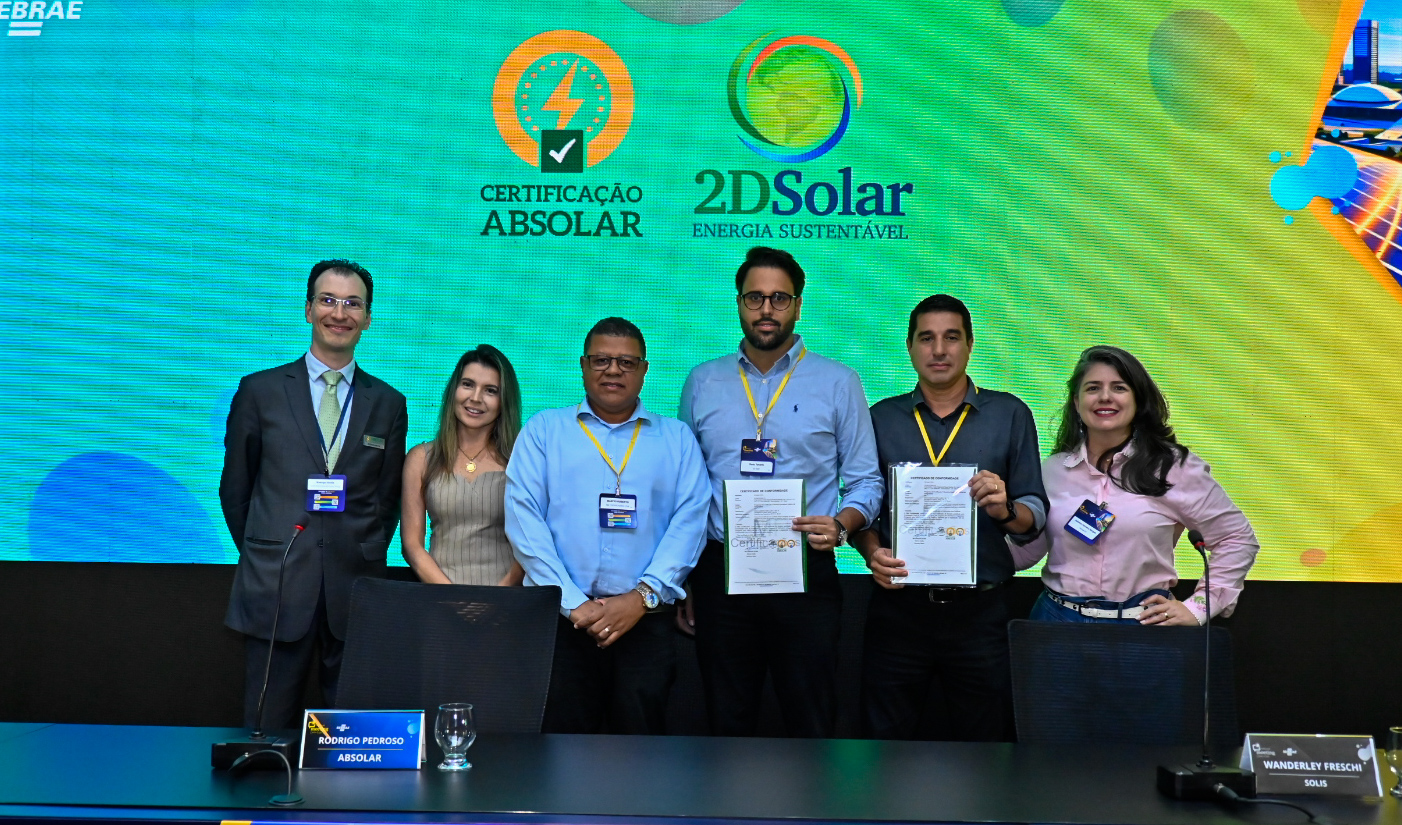 2D Solar, empresa brasiliense que atua no setor de energia solar fotovoltaica há quase uma década, tornou-se a primeira organização do Distrito Federal e da Região Centro-Oeste a conquistar a Certificação de Qualidade fornecida pela Associação Brasileira de Energia Solar Fotovoltaica (ABSOLAR). O reconhecimento, na categoria Integradores, nível AA, ocorreu durante a edição 2026 do ABSOLAR Meeting Centro-Oeste, evento promovido pela associação na primeira quinzena de março e que reuniu empresários, especialistas, autoridades públicas, integradores, distribuidores e demais profissionais do setor para debater temas estratégicos e fortalecer a cadeia produtiva da energia solar.