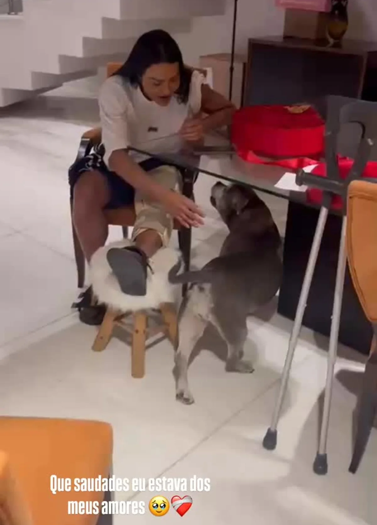 Gracyanne Barbosa foi recepcionada pelos seus cachorrinhos
