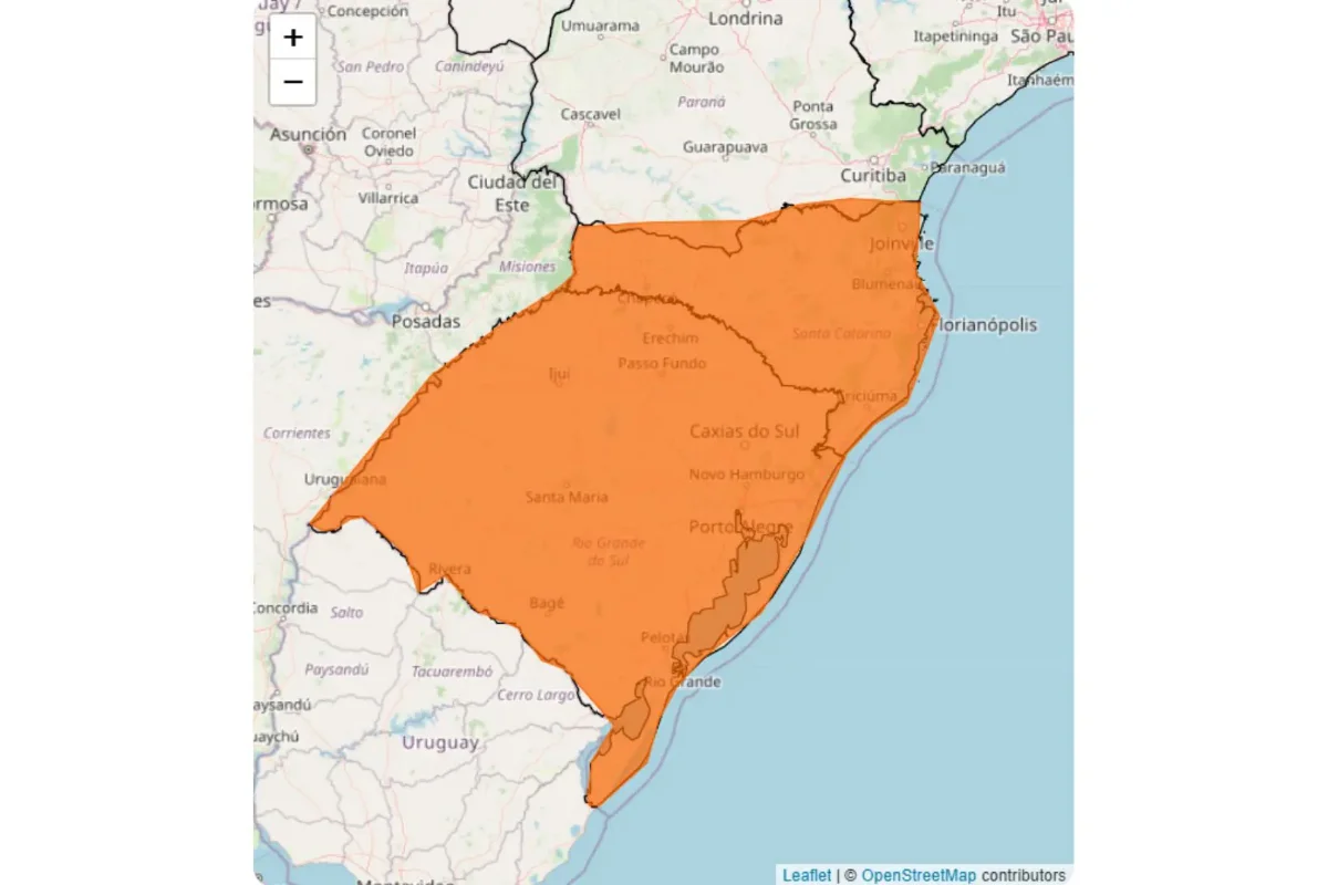 O primeiro aviso de perigo por risco de tempestade é válido para o sul do Paraná e os estados de Santa Catarina e Rio Grande do Sul