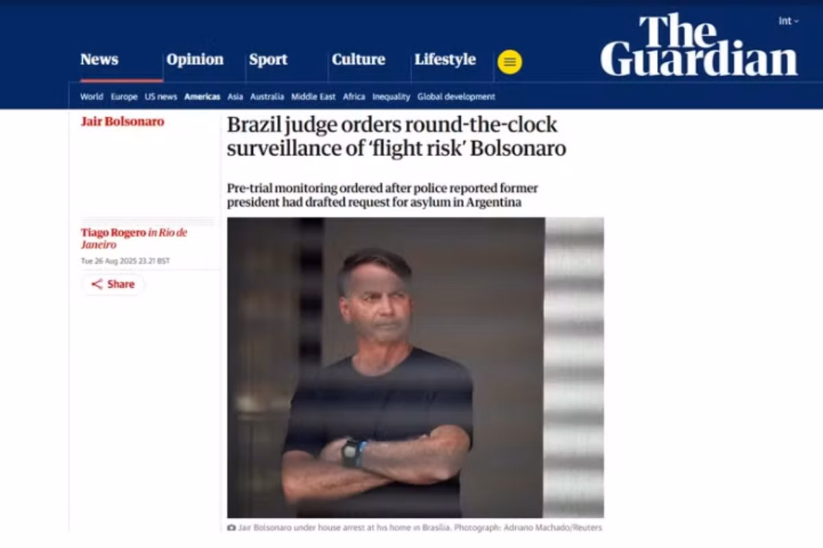 No também britânico The Guardian, o destaque foi colocado sob a vigilância policial constante de Bolsonaro, por risco de fuga. O jornal francês Le Monde também destacou que Bolsonaro foi classificado como “risco de fuga” e passou a ser monitorado 24 horas por dia.