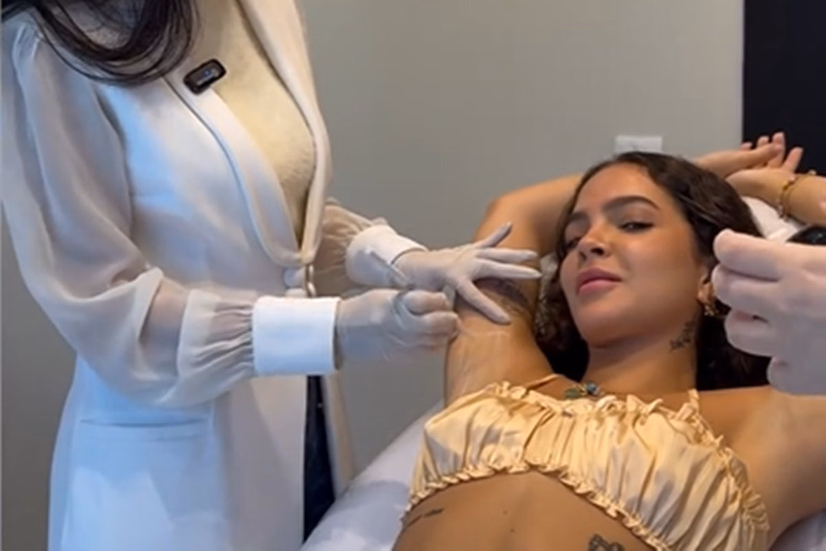 “Desde que me conheço por gente, suo muito pelas axilas. Pode estar frio que eu continuo suando. O botox realmente me salvou, não dói nada”, disse a artista nos stories do Instagram.