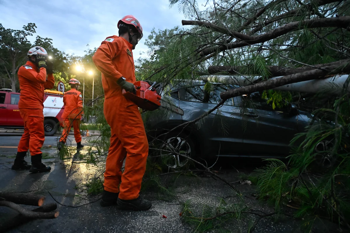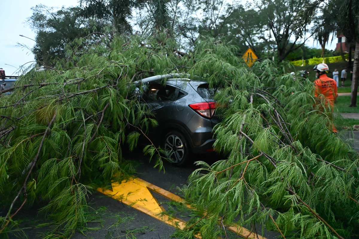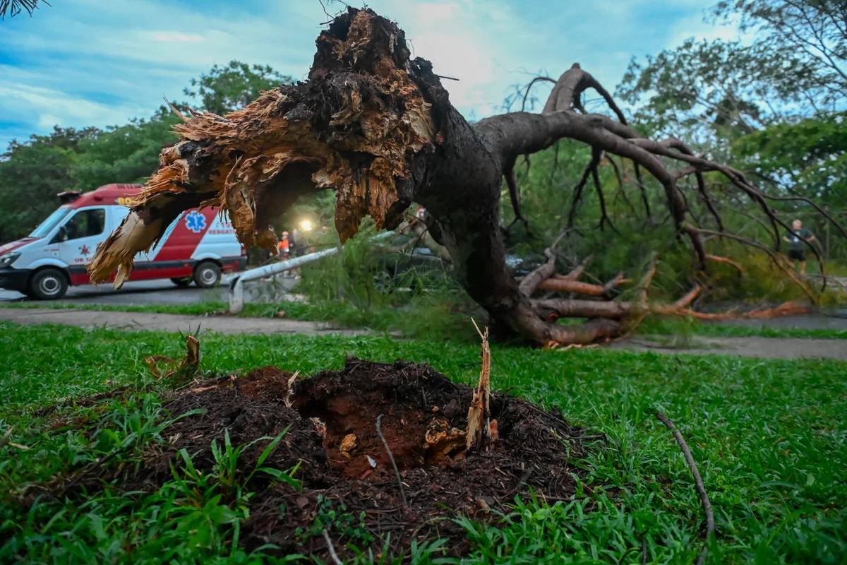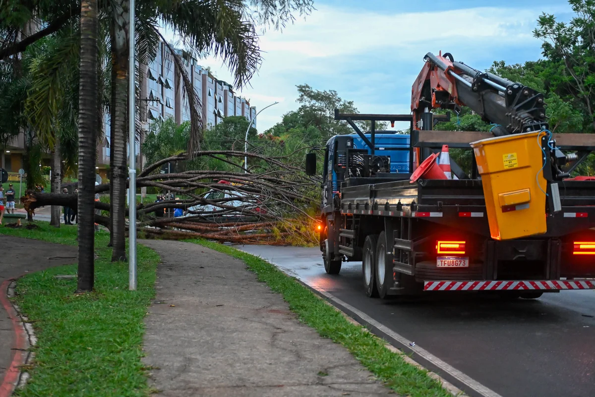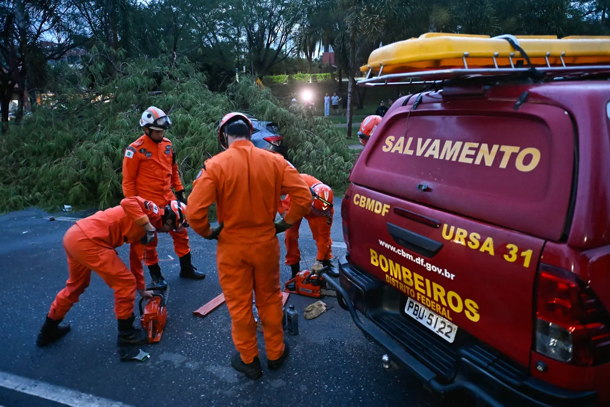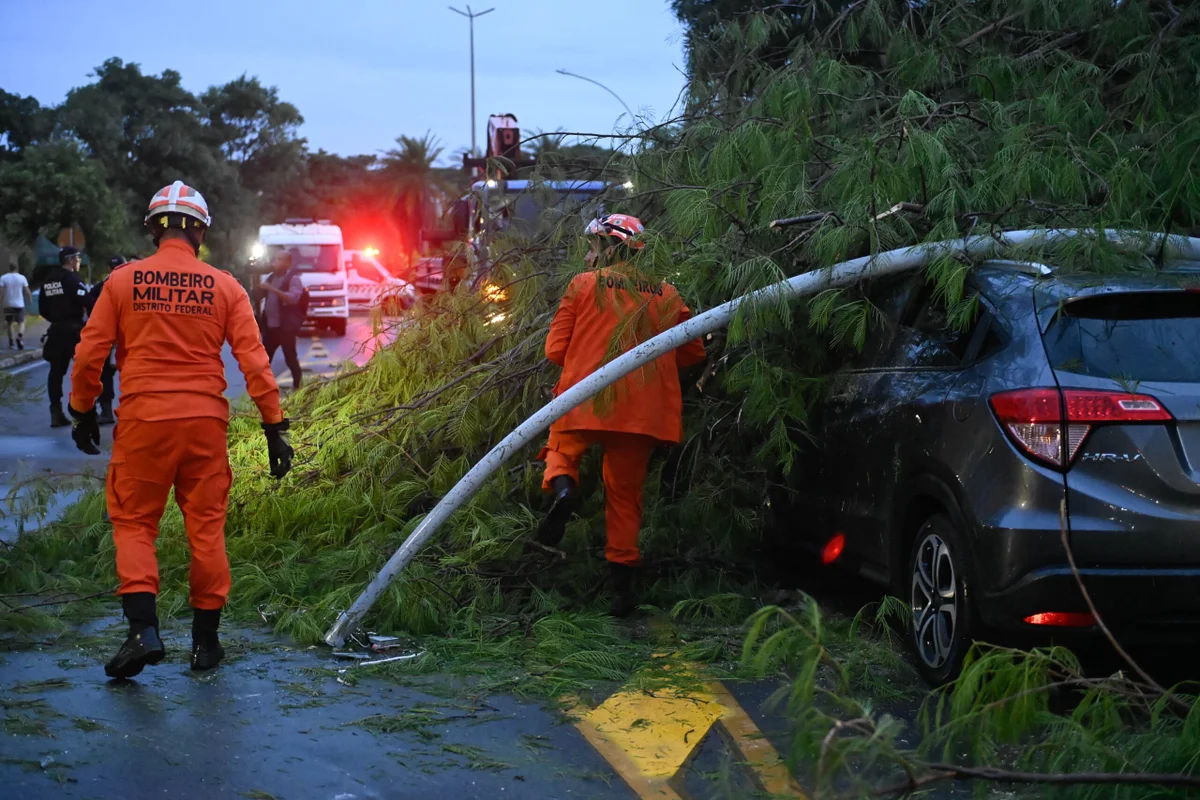 O Corpo de Bombeiros Militar do DF (CBMDF) atuou na retirada da árvore que caiu sobre o carro, enquanto a Neoenergia ficou responsável pela remoção do poste danificado.