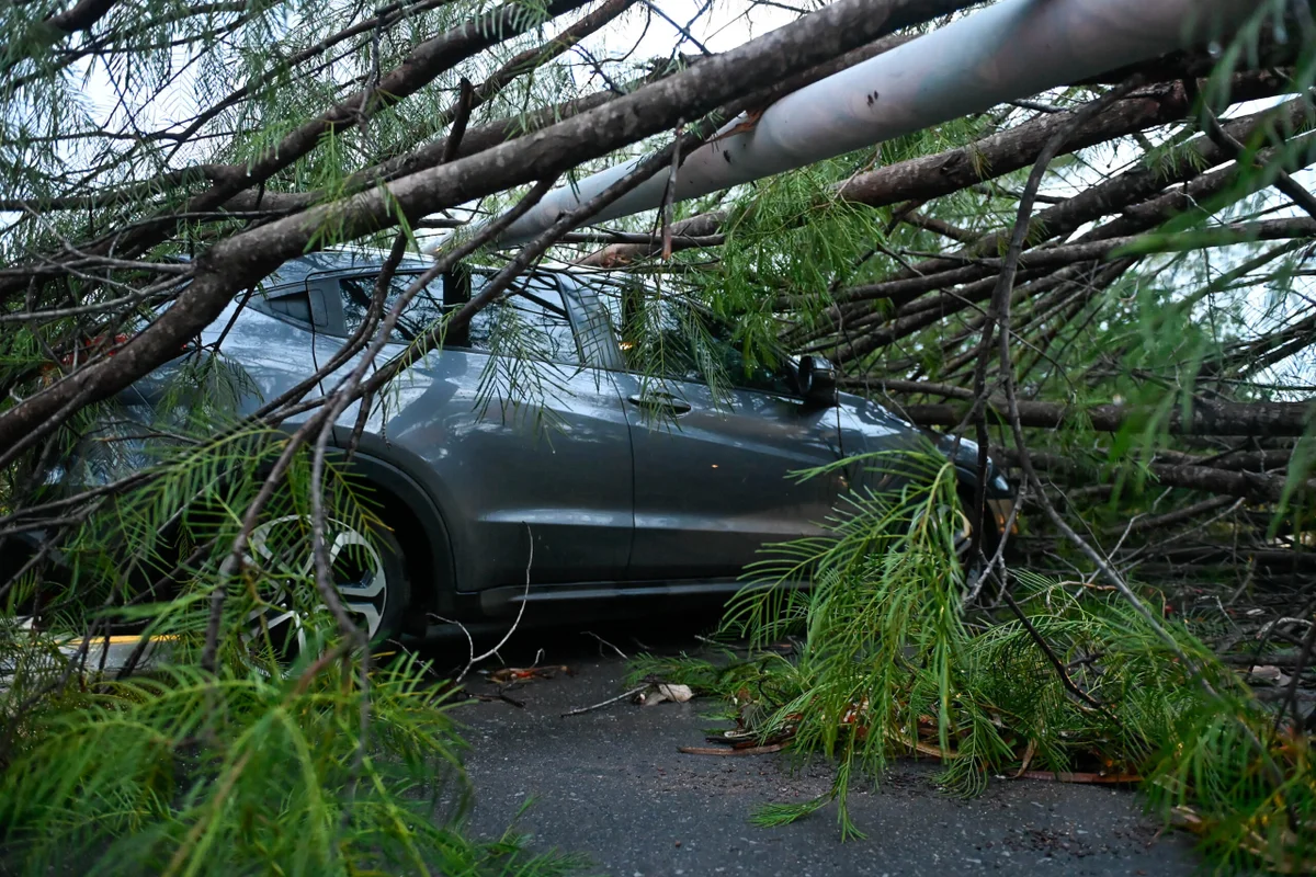 Mulher de 41 anos ficou presa no carro após queda da árvore