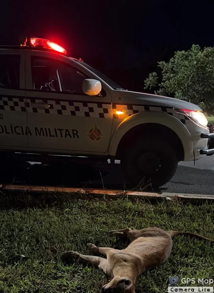 A Polícia Militar informou ainda que as características do animal e o local do atropelamento indicam que se trata do mesmo exemplar que estava sendo acompanhado pelas equipes ambientais.