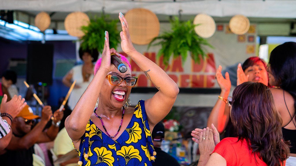 Nesta edição, o evento será dedicado às mulheres e propõe uma tarde de celebração coletiva marcada por música, dança e convivência comunitária. Entre as atrações confirmadas estão apresentações do Samba da Loba com Kika Ribeiro, do grupo Samba Delas com Fernanda Jacob, além da discotecagem da DJ Ketlen.