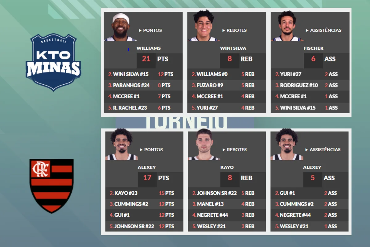 O último quarto teve show defensivo do Flamengo, enquanto o KTO/Minas tentava reagir. O aproveitamento das equipes e o placar do período foram mais baixos, com destaque para a atuação das defesas. O cansaço também pesou, e os erros mantiveram a distância segura entre os times. O cestinha da partida foi Williams, com 21 pontos, mas quem roubou a cena foi Kayo, que alcançou 22 de eficiência e mostrou a força do banco e da base rubro-negra.