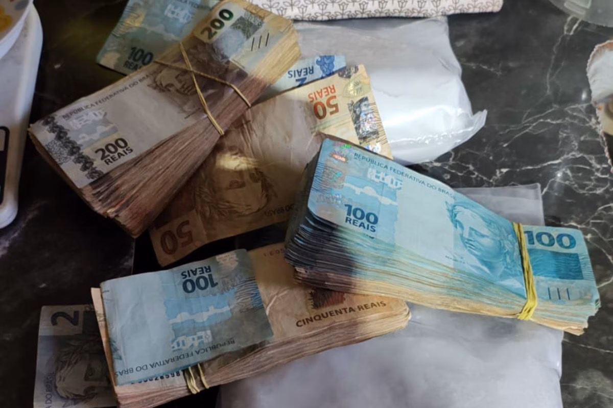 Foram apreendidas grandes quantidades de drogas como maconha, skunk e cocaína, além de embalagens, balança de precisão e R$ 20,2 mil em espécie.