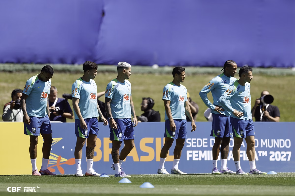 Após ter garantido a classificação nos últimos compromissos, empate com o Equador e vitória sobre o Paraguai, o técnico deve manter esquema ofensivo com quatro atacantes: Raphinha, Estêvão, João Pedro e Gabriel Martinelli.