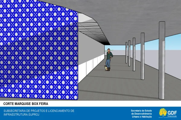 A pasta destaca que a principal novidade é a criação de marquises de concreto que interligam os boxes, e protegem visitantes, comerciantes e mercadorias do sol e chuva.